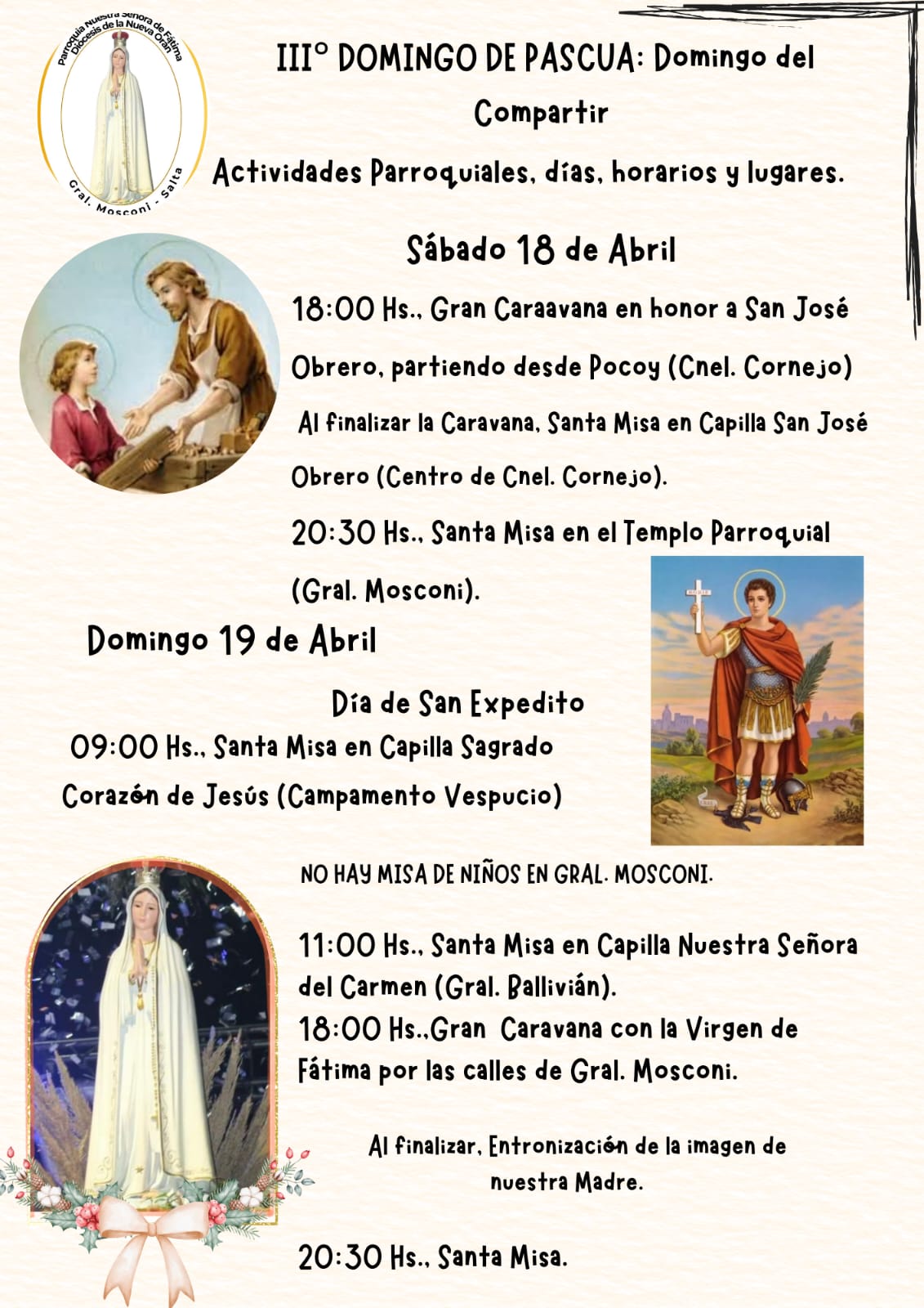General Mosconi: Actividades parroquiales.