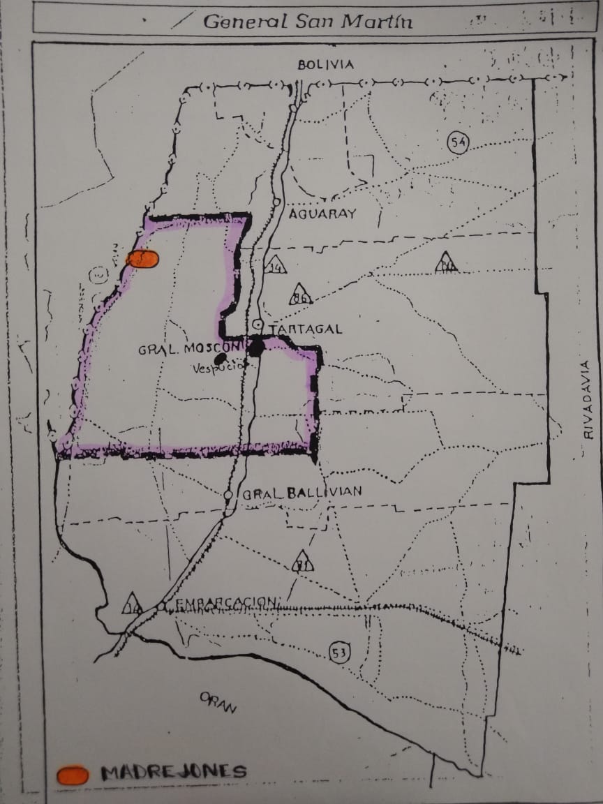 Este lejano Paraje denominado Madrejones del Tarija ubicado geográficamente en el límite mismo con la hermana República de Bolivia, el lugar mas alejado del país en su frontera norte, fue reencontrado por el Grupo Expedicionario Mosconi  en un intento de llevar a conocimiento público la verdadera delimitación de nuestro Municipio, y en una expedición que duró 21 días de cabalgata pudimos detectar y delimitar las falencias que existían de la custodia de la Soberanía Nacional en ese lugar.
