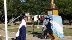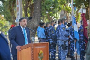 El acto de Aguaray estuvo presidido por el el Intendente Jorge Prado, y en esta oportunidad lo acompañaron miembros de su gabinte y representantes de las fuerzas de Seguridad. El mismo se llevó a cabo en el predio del Barrio Belgrano.