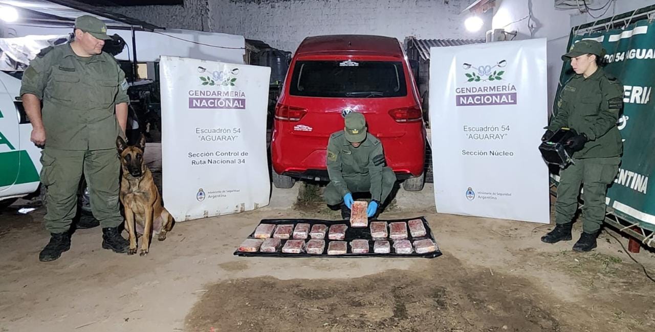 Los gendarmes detectaron irregularidades en el habitáculo. El can antinarcóticos “Braco” confirmó la existencia del estupefaciente.