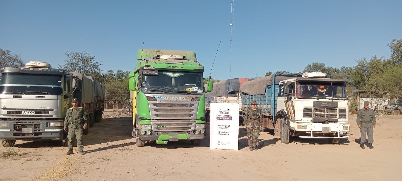 Al momento de la inspección, los gendarmes detectaron que los rodados contenían un total de 96.000 kilos de soja a granel.