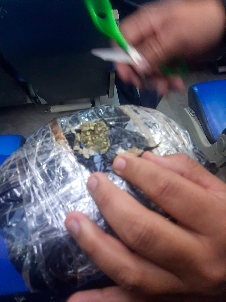 Al arribar a la terminal de ómnibus de Aguaray con colaboración se efectivos de la Comisaria 46 procedieron a la demora del mismo verificando que en una mochila llevaba dos envoltorios encintados aparentemente con sustancia estupefaciente.