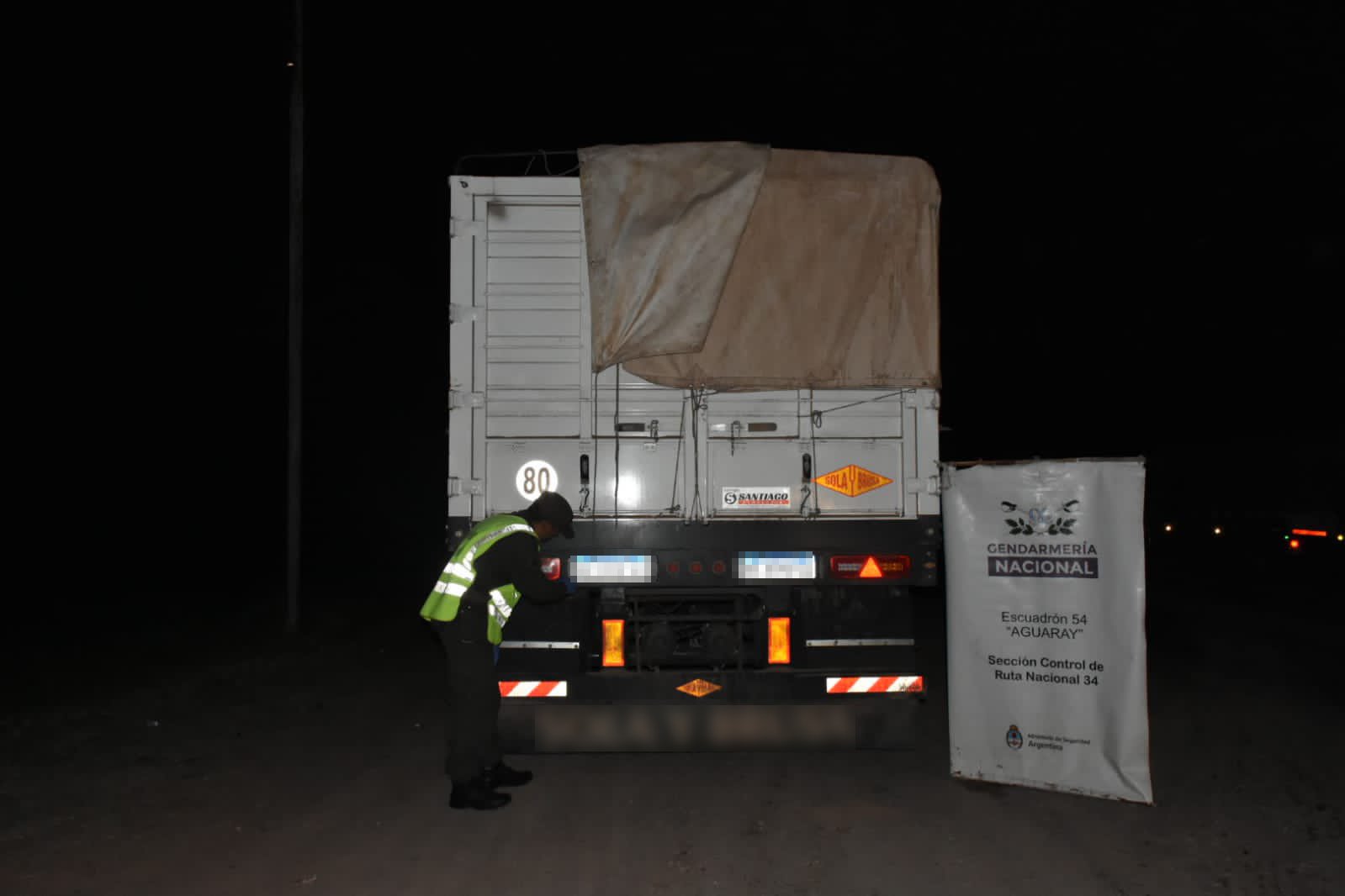 En la madrugada de ayer, los efectivos del Escuadrón 54 “Aguaray” desplegados sobre el kilómetro 1.466 Ruta Nacional N° 34, controlaron (en el transcurso de una hora) dos camiones con semirremolque.