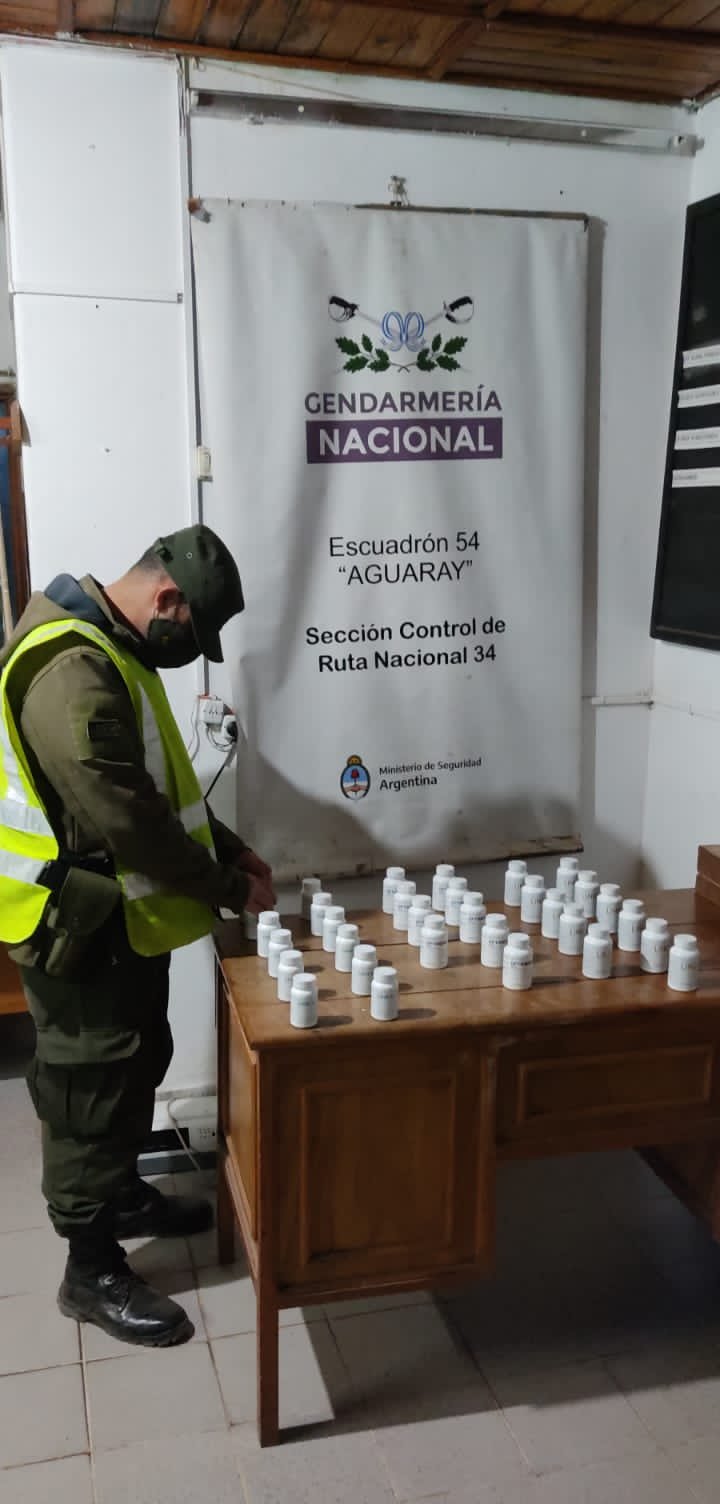Al momento de la inspección, los funcionarios hallaron en el baúl del rodado, 32 frascos de medicamentos que no poseían ningún certificado médico que diagnostique el estado de salud del involucrado o justifique la aplicación de la medicación.