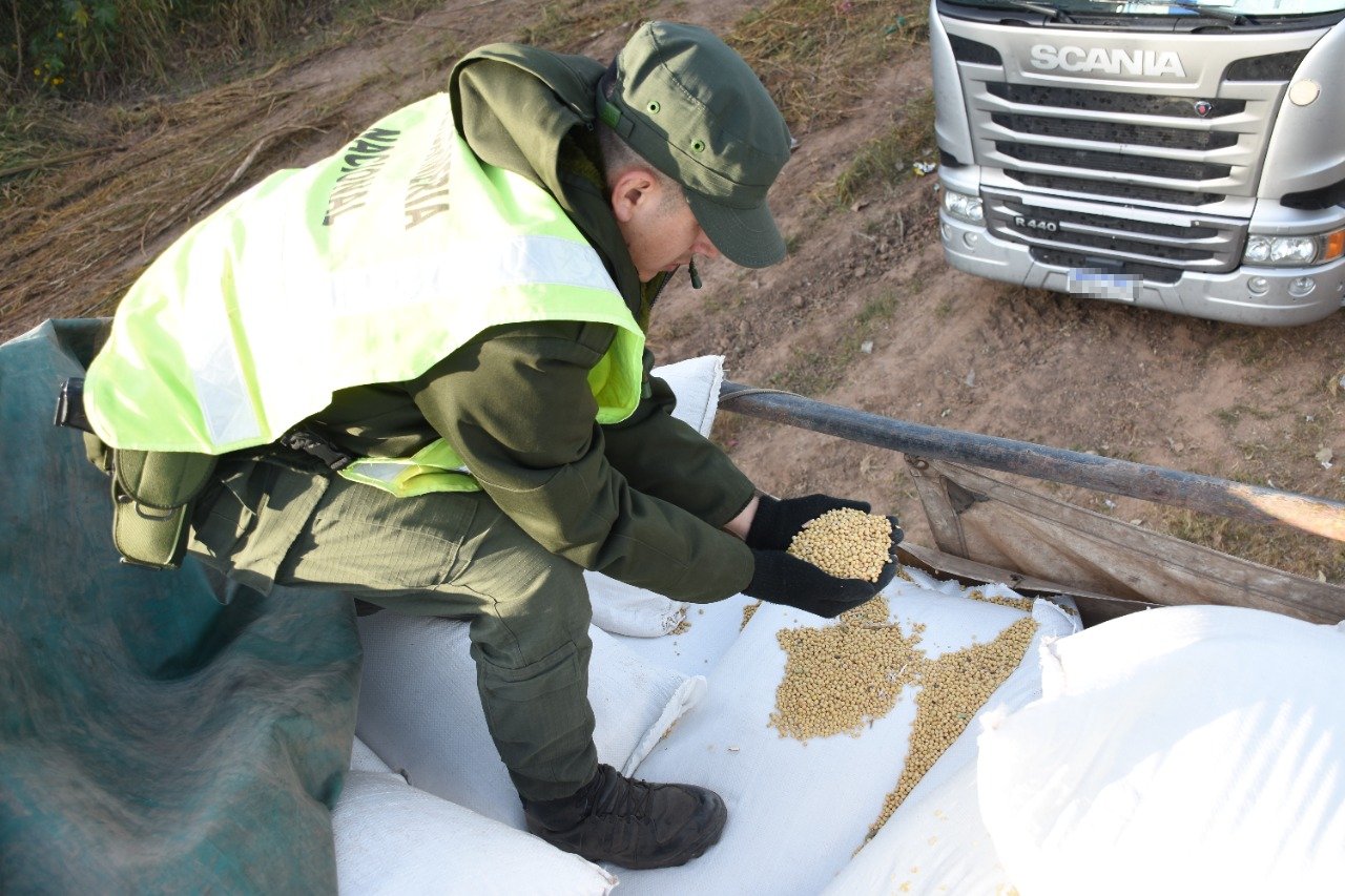 Los gendarmes detectaron que el chofer trasportaba 600 bolsas tipo arpillera que contenía soja entera y partida, por lo cual el personal de la Fuerza realizó el registro correspondiente de la documentación.