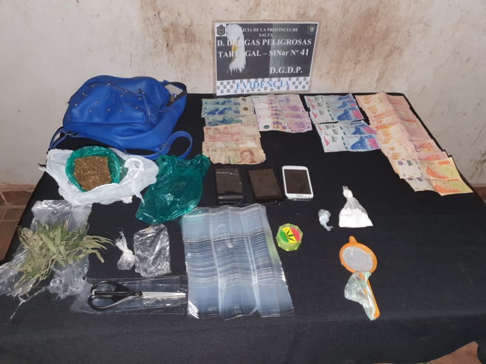 Secuestraron 04 plantas de marihuana en su estado natural de alrededor de 1,90 metros de altura, 400 dosis de esta sustancia disecada, dinero en efectivo y otros elementos de prueba para la causa.