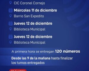 General Mosconi: Cronograma de atención del Móvil de Registro Civil.