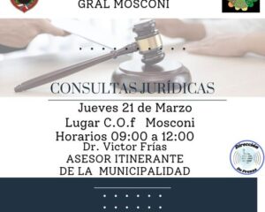 General Mosconi: El Dr. Víctor Frías atenderá en las instalaciones del COF este 21 de marzo.