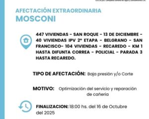 General Mosconi: Comunicado de prensa de Aguas del Norte para nuestra ciudad.
