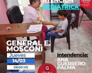 General Mosconi: La Doctora Gladys Paredes realizará atención médica este jueves en la Sec. de Desarrollo Humano del Municipio.