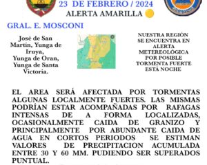 General Mosconi: Defensa Civil informa Alerta Amarilla para el día de hoy.