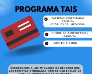 General Mosconi: Hoy después del mediodía estarán acreditadas las Tarjetas TAIS.