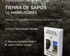 Tartagal: El escritor Mario Flores presentará su libro «Tierra de sapos». Será este miércoles en el CCT.
