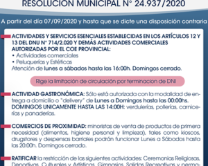 TARTAGAL: RIGEN NUEVAS MEDIDAS EN EL MUNICIPIO A PARTIR DEL LUNES 7 DE SETIEMBRE.