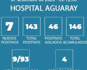 COVID-19: AGUARAY REGISTRA 7 NUEVOS CASOS POSITIVOS Y ACUMULA 146