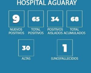 COVID-19: AGUARAY REGISTRA HOY 9 NUEVOS CASOS POSITIVOS Y 1 FALLECIMIENTO.