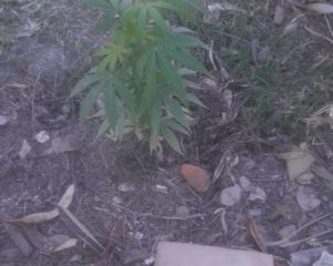 Tartagal: Un plantín de cannabis sativa en la vereda de una casa.