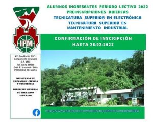 GENERAL MOSCONI: INCRIPCIONES ABIERTAS EN EL INTITUTO POLITÉCNICO MODELO N° 6035 DE CAMPAMENTO VESPUCIO.