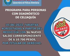 General Mosconi: Desde mañana quedarán habilitadas las tarjetas destinadas a beneficiarios con diagnóstico de celiaquía.