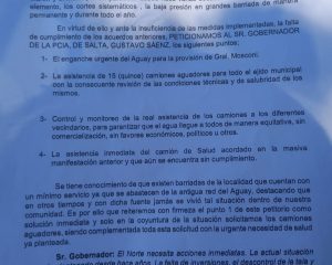 GENERAL MOSCONI: PETITORIO DE LOS VECINOS AUTOCONVOCADOS POR LA FALTA DE AGUA EN RUTA NACIONAL 34.