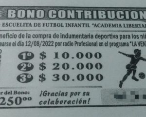 GENERAL MOSCONI: MAÑANA SORTEA EL BONO CONTRIBUCIÓN DE LA ESCUELITA DE FÚTBOL INFANTIL «ACADEMIA LIBERTAD».