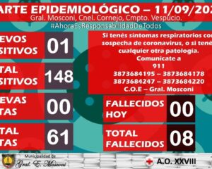 COVID-19: GENERAL MOSCONI REGISTRA 1 NUEVO CASO POSITIVO Y ACUMULA 148
