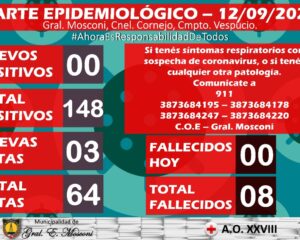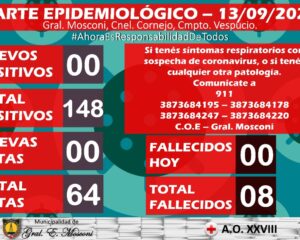 COVID-19: GENERAL MOSCONI NO REGISTRA CASOS DE COVID-19 PARA EL PARTE DE LA FECHA