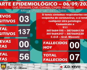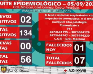 COVID-19: GENERAL MOSCONI REGISTRA 2 NUEVOS CASOS POSITIVOS Y 1 NUEVO FALLECIMIENTO.