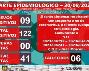COVID-19: GENERAL MOSCONI REGISTRA 9 NUEVOS CASOS POSITIVOS.