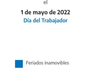 EL PROXIMO DOMINGO 1 DE MAYO ES FERIADO INAMOVIBLE Y EL LUNES 2 DÍA NO LABORABLE.