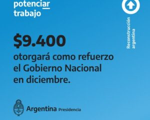 PROGRAMA POTENCIAR TRABAJO: EN DICIEMBRE RECIBIRÁN UN REFUERZO DE $9400.
