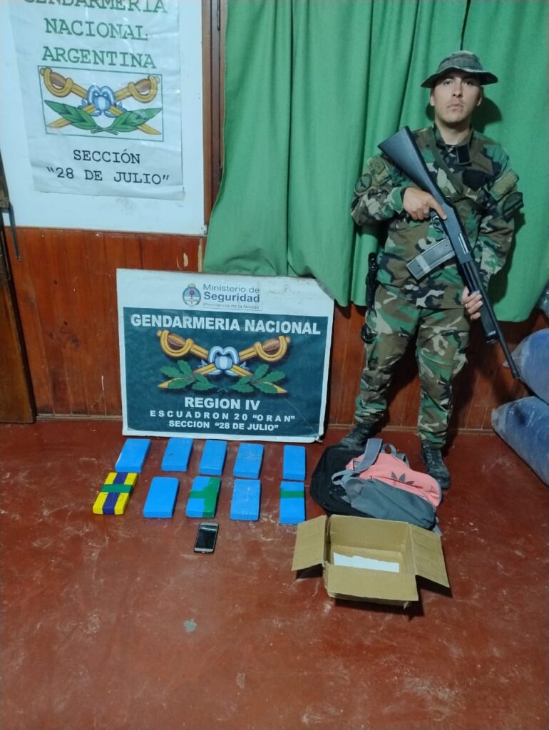 Orán: Una patrulla de gendarmes halló 10 kilos de cocaína entre la maleza en Río Pescado.