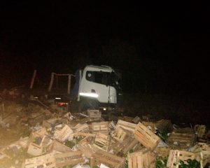 GENERAL GUEMES: LA POLICÍA TRABAJÓ EN UN SINIESTRO VIAL. UN CAMION CON VERDURAS VOLCO SOBRE RUTA NACIONAL 34.