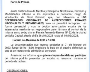 CUADRO PROVISORIO: CONCURSO DE VICEDIRECTORES NIVEL PRIMARIO 2023 EN NUESTRA PROVINCIA.