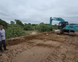 El Gobierno trabaja en el alteo del terraplén de contención del Río Pilcomayo.