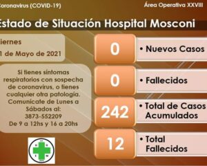 COVID-19: GENERAL MOSCONI NO REGISTRA NUEVOS CASOS POSITIVOS.