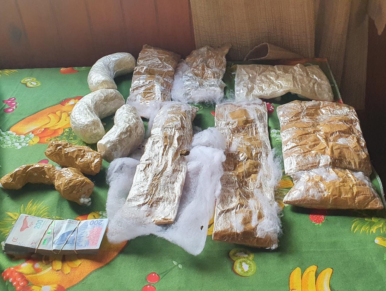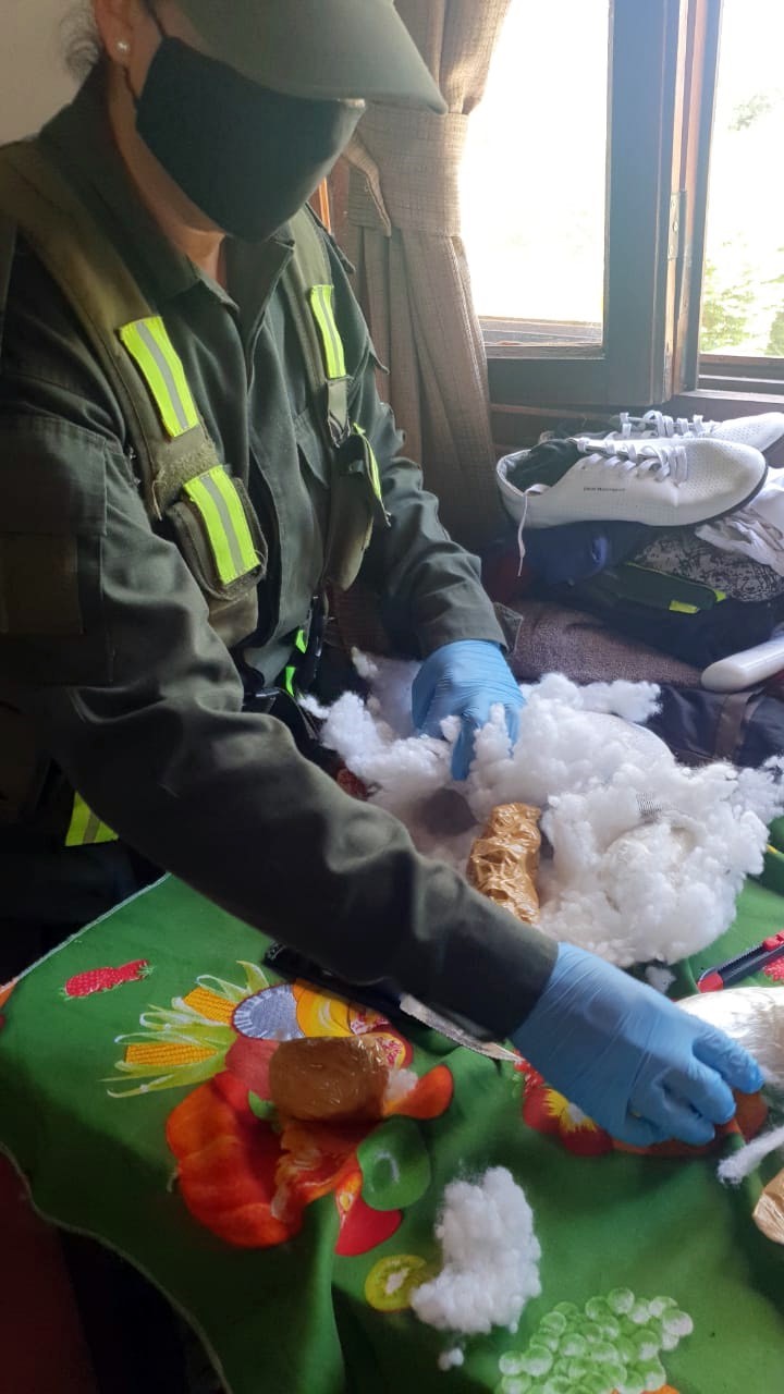 Tal situación, derivó en la apertura de las telas, constatando seis paquetes amorfos y dos rectangulares, los cuales contenían dos kilos de cocaína y 485 gramos de “cannabis sativa”.