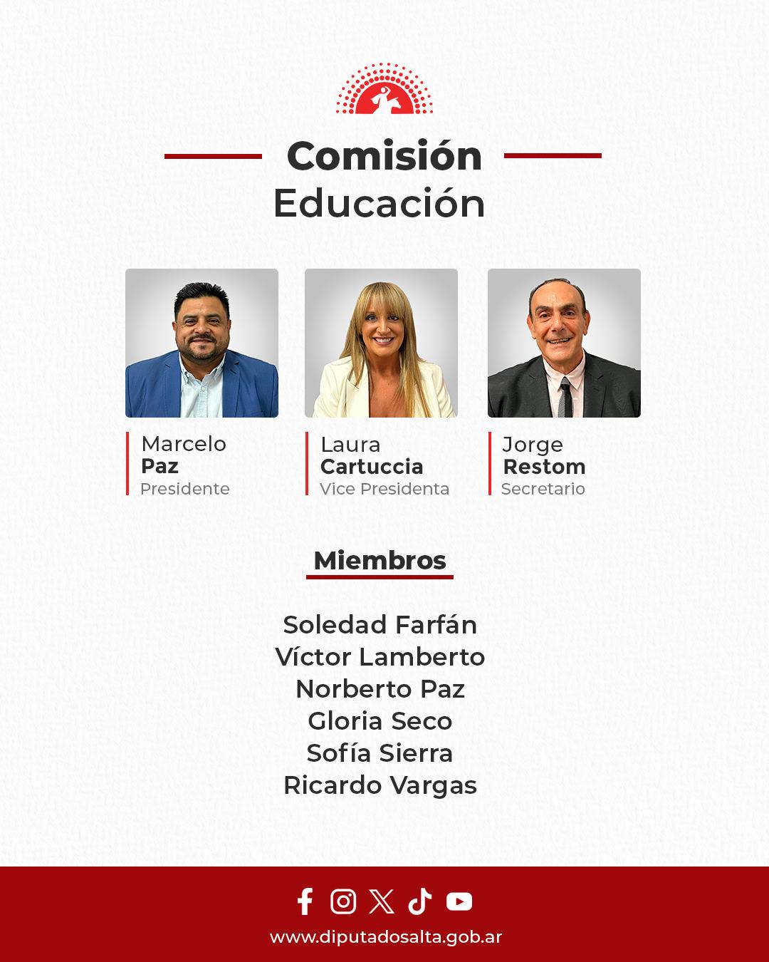 Cada una de las comisiones permanentes de la Cámara Baja salteña están integradas por diputados que se especializan en temas específicos, como salud, educación, economía y trabajo, entre otros, lo que permite u n análisis profundo y detallado, para que cada proyecto sea evaluado con seriedad y responsabilidad.