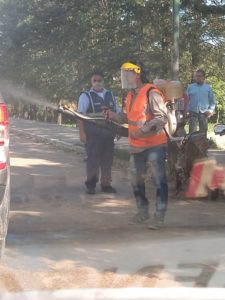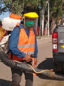 Una de las medidas que se determinó en las distintas reuniones del comité de crisis en nuestra ciudad, es la del trabajo de desinfección en el ingreso a la ciudad ( acceso norte, inmediaciones de la estación de servicios ).De esta manera los vehículos que hacen su ingreso son desinfectados con los elementos ya distribuidos para tal fin .