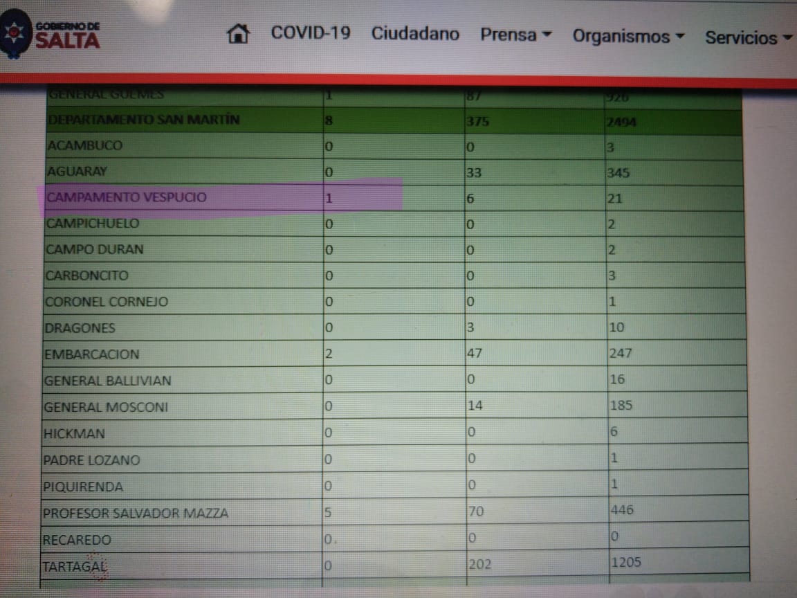 En el día de ayer se confirmó un nuevo caso positivo de Covid-19 en Campamento Vespucio. Se trata de un personal de las Fuerzas de Seguridad con domicilio en General Mosconi que presta servicios en la Unidad Operativa de Vespucio.