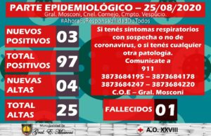 El Comité Operativo de Emergencia (COE) de nuestra ciudad informa a través del Hospital tres (3) nuevos casos Positivos de COVID-19. Se trata de testeos realizados en laboratorios privados.