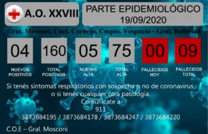 COVID-19: GENERL MOSCONI REGISTRA 4 NUEVOS CASOS POSITIVOS Y ACUMULA160