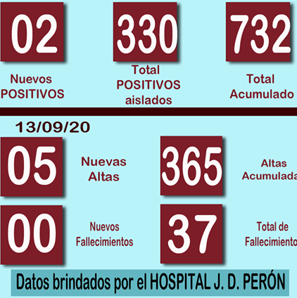 El Hospital Juan Domingo Perón informó 2 Nuevos POSITIVOS en la parte pública y 5 altas médicas para pacientes covid 19; para este parte diario.