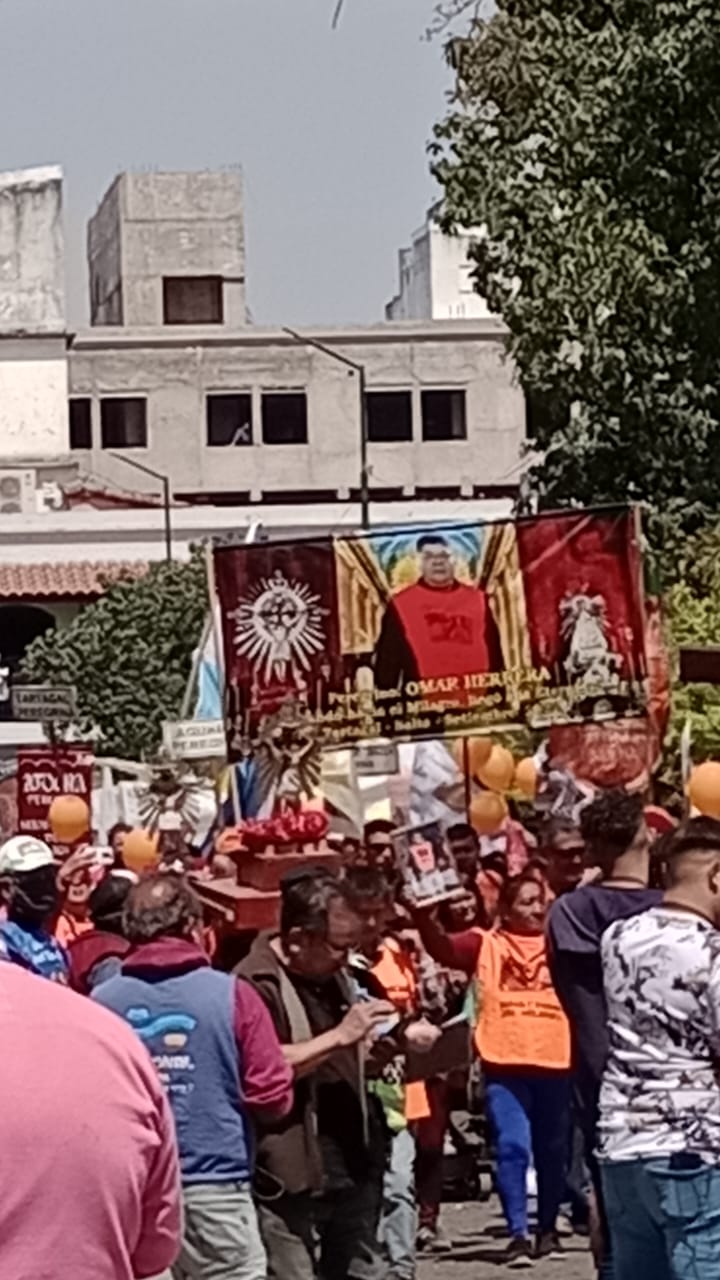 «UN PEREGRINO QUE CAMINANDO AL MILAGRO LLEGO A LA ETERNIDAD», rezaba la gigantografía a manera de estandarte con la que ingresaron a la capital de nuestra provincia.