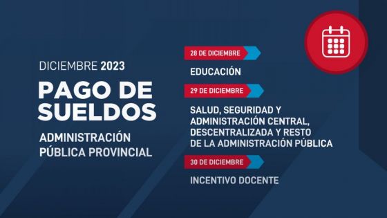 El jueves 28 se depositará los haberes para educación y el viernes 29 para el sector de salud, seguridad, administración central, descentralizada y resto de la administración pública. El 30 de diciembre se depositará incentivo docente.