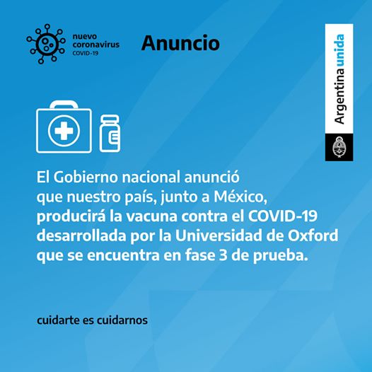 EL PRESIDENTE ALBERTO FERNANDEZ ANUNCIÓ QUE NUESTRO PAÍS FABRICARÁ LA VACUNA OXFORD CONTRA EL COROANVIRUS .