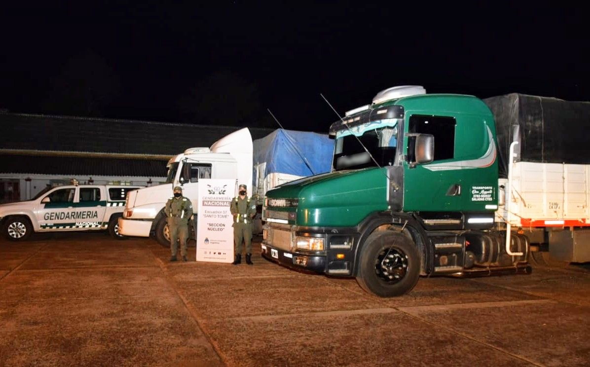 En Corrientes, los integrantes del Escuadrón 57 “Santo Tomé” desplegados sobre el kilómetro 669 de la Ruta Nacional Nº 14, incautaron 56.000 kilos de los mismos granos que eran transportados en dos camiones.
