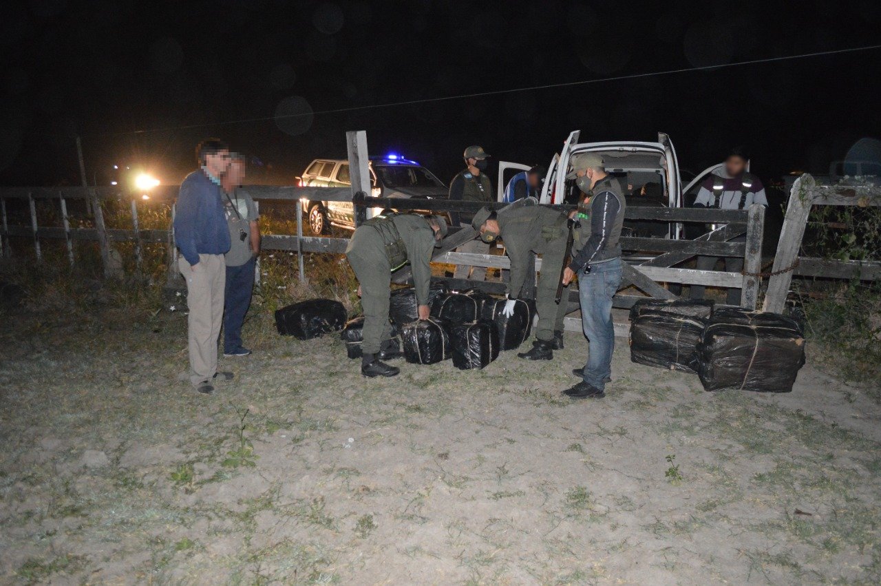 En medio de la noche y la espesura del monte, los funcionarios detuvieron a dos personas cuando acopiaban la droga.