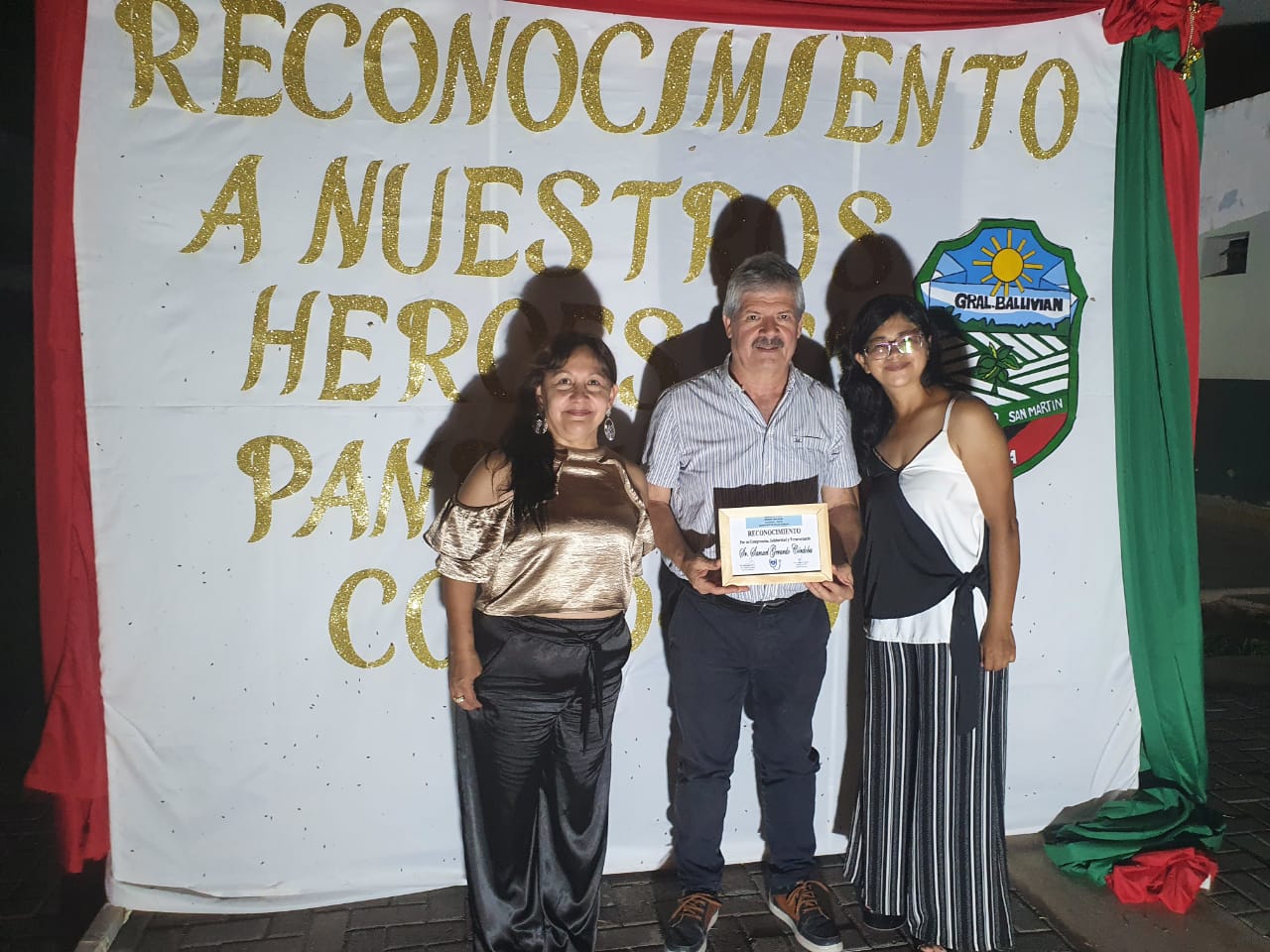 El evento se realizó al aire libre en los predios del municipio, bajo el lema «Reconocimiento a Nuestros Héroes en pandemia» y contó con la presencia del Intendente Municipal Gerardo Córdoba, miembros de su gabinete y de la Diputada Provincial Ana Laura Córdoba. Por el Centro de Salud de General Ballivián estuvieron la Jefa del Centro Dra. Noemí Maizares y la responsable del COE Ballivián Dra. Carmen Cinchón.