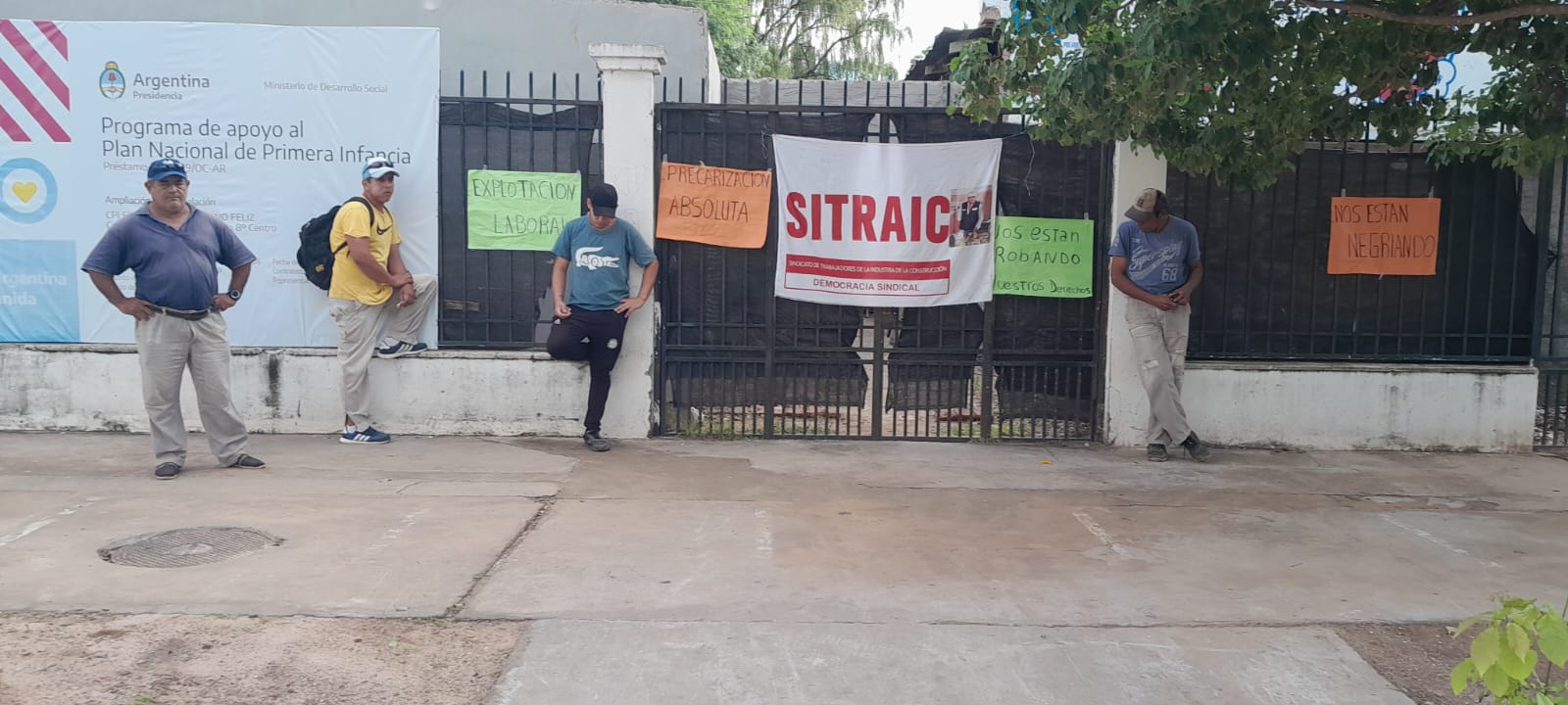 trabajadores de la obra de ampliación de la sala y guardería para los niños de General Ballivian, llevan adelante un paro de actividades desde el día de ayer.